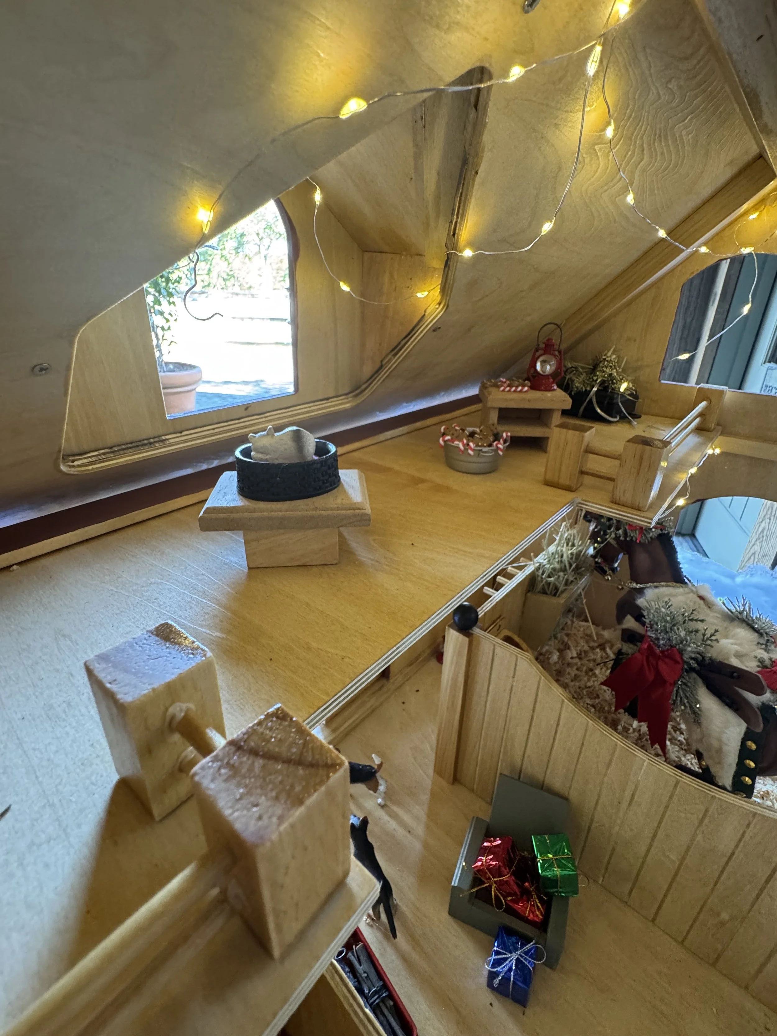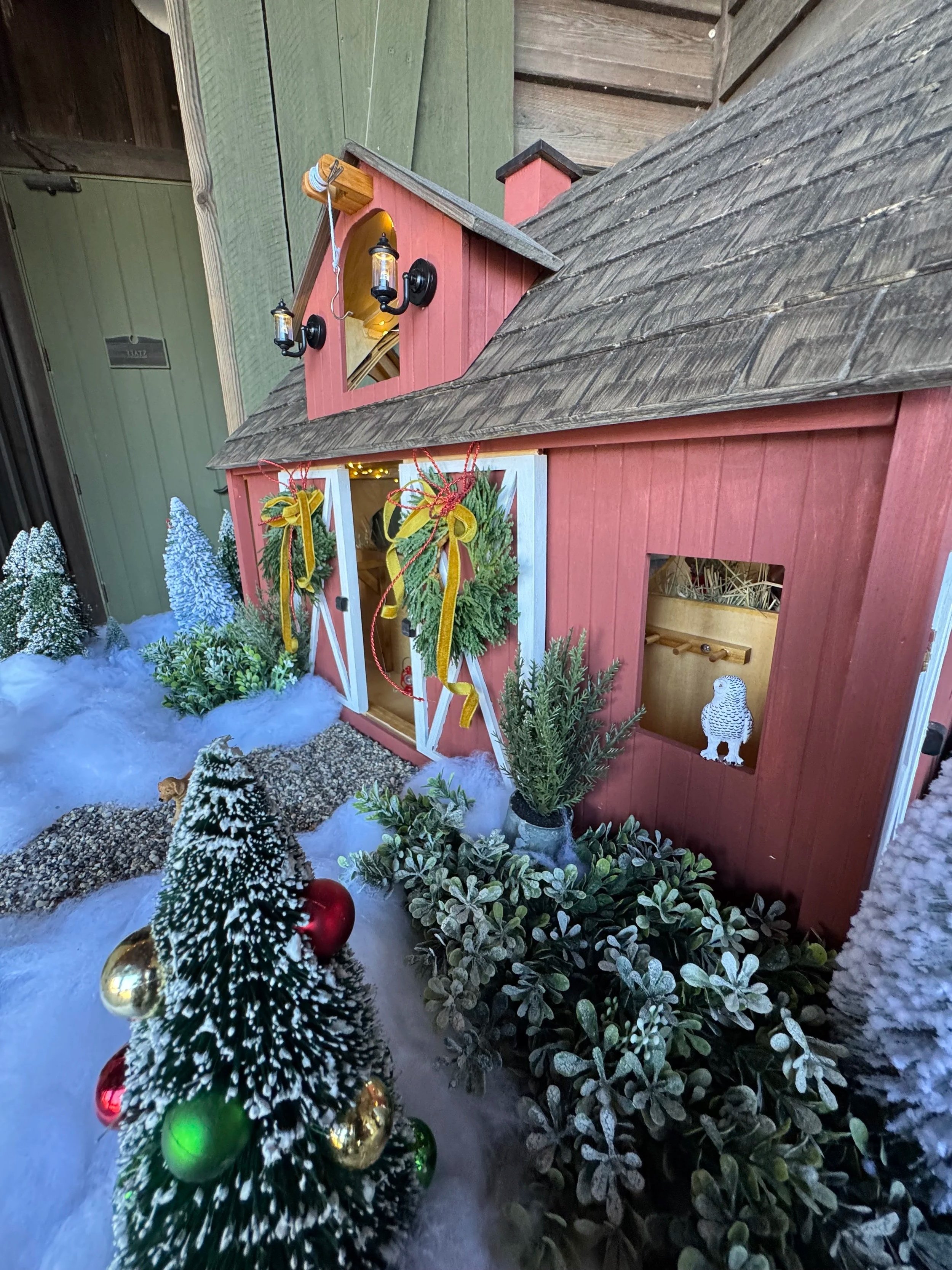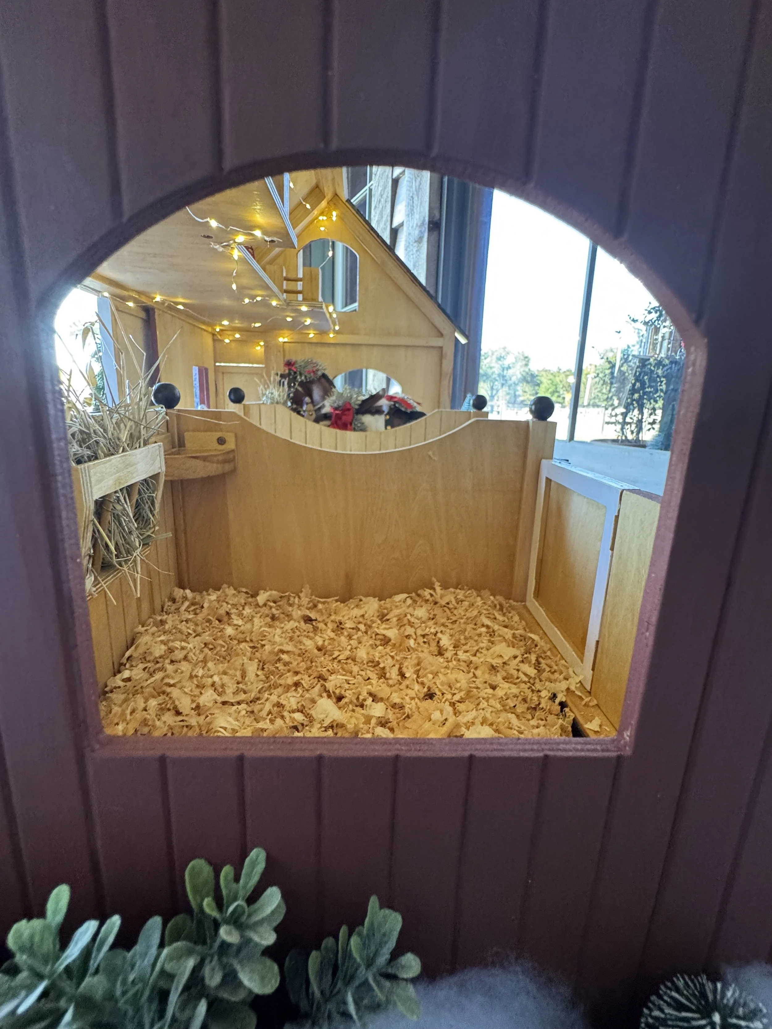 The Stables at Frederica is proud to introduce The Altamaha, our newest customized Breyer Model Horse barn. This model is boasts two stalls with a center aisle, front tack areas with saddle and bridle racks, and upstairs hay loft. Decorated for a cozy holiday eve, this beautiful traditional red barn with shingle roof will delight horse lovers both young and young at heart.